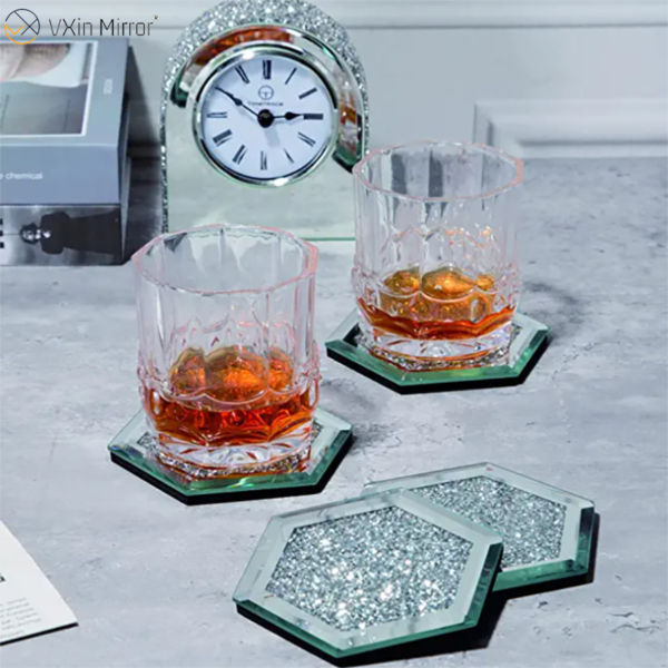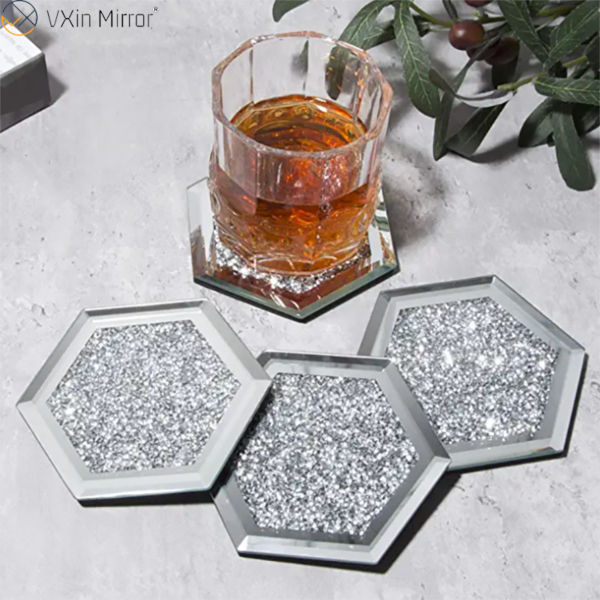 Posavasos decorativo de cristal templado para decoración de mesa, juego de posavasos con espejo, 4 tazas, 2022