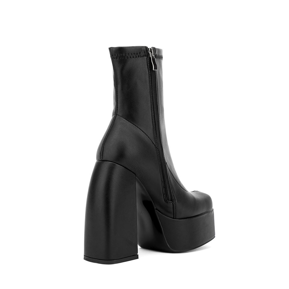 Botines de tacón de bloque para mujer, botas de plataforma de cuero sintético, color negro, talla grande 43, para invierno, novedad de 2022