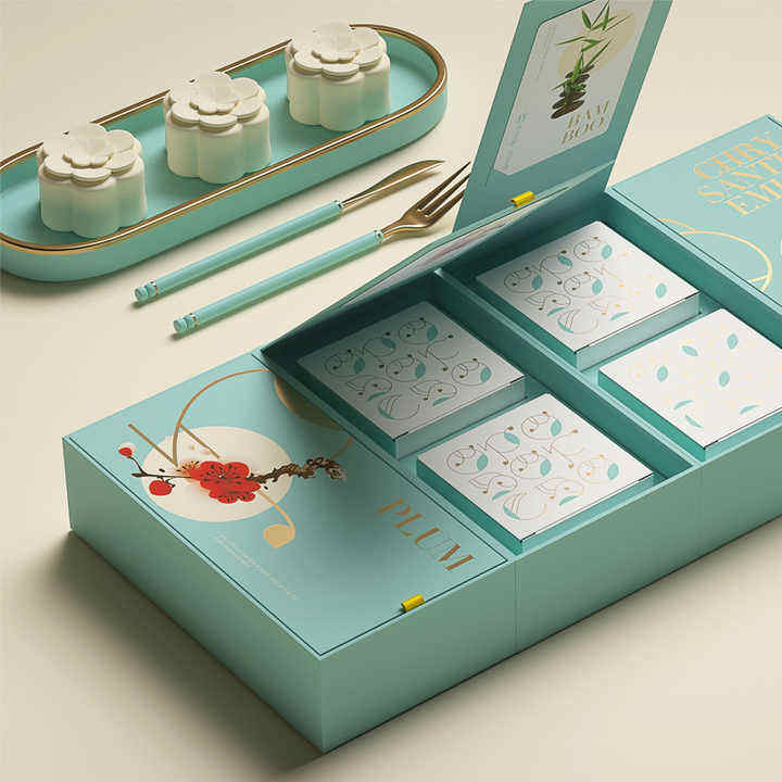 Caja de pastel de luna de lujo de cartón plegable Premium 2022, embalaje Rectangular rígido, diseño Premium de 2 a 8 piezas para pasteles de Luna