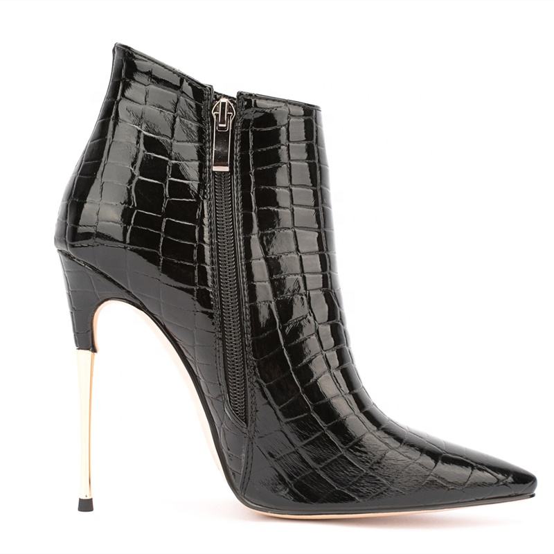 Botines de tacón alto de metal modernos estilo occidental con estampado de piedras y cremallera lateral para mujer, talla grande 47, colección primavera 2022