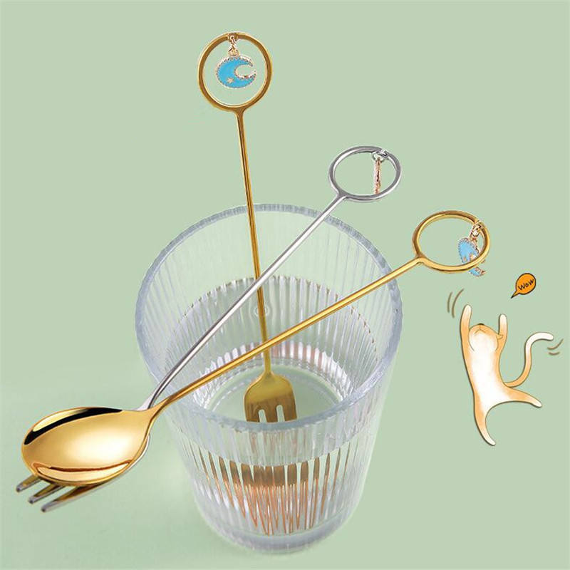 Cuchara de postre de acero inoxidable Eid Mubarak, cuchara de postre de estrella y Luna Dorada, decoración para fiesta musulmana de Ramadán, tenedor XJ0228, 2022