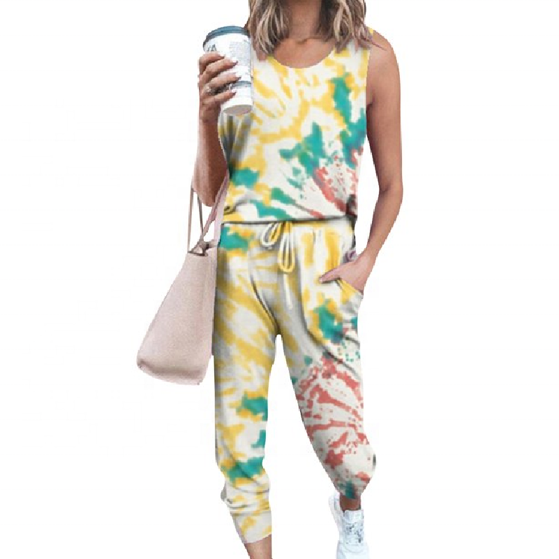Conjunto de Yoga de alta calidad para mujer, Top y pantalones sin mangas estampados, ropa deportiva de talla grande para uso en el gimnasio, 2022