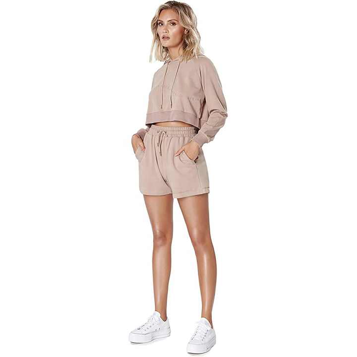 2023 el mejor conjunto informal de dos piezas para mujer, Camiseta de algodón transpirable, pantalones cortos por encima de la rodilla, patrón sólido, tela de punto de alta calidad