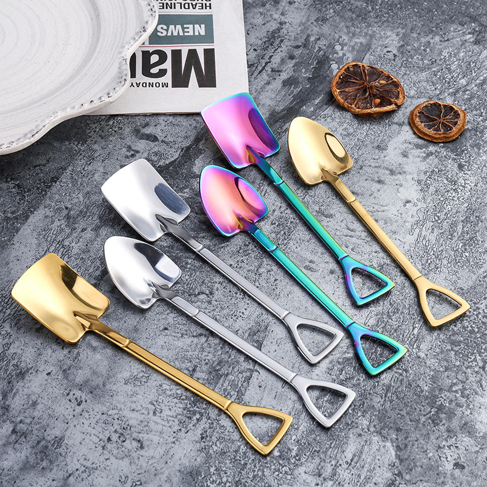 Pala de sandía creativa 2023, pala plana cuadrada de acero inoxidable, pala de ingeniero desechable para juego de cuchara de té y café, caja de regalo