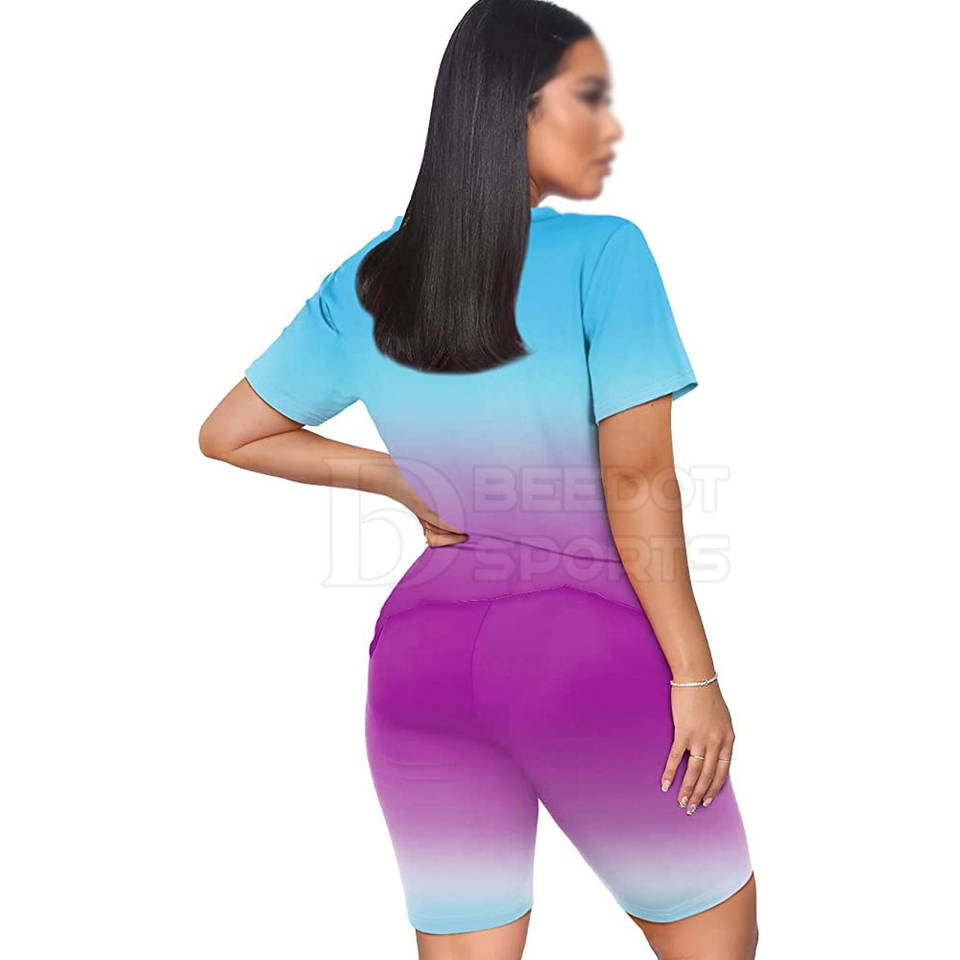 2023 Logo personalizado mujer XL tamaño 2 piezas ropa deportiva patrón sólido lona Casual verano trajes hasta la rodilla camiseta pantalones cortos