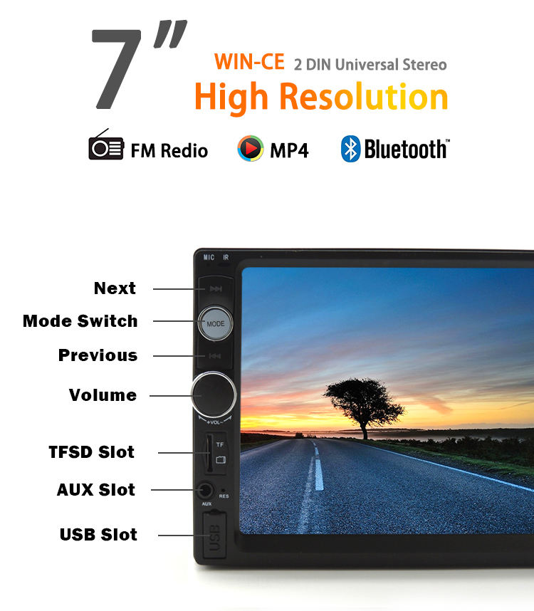 Reproductor Multimedia para Auto Doble DIN 7010b 2023, Pantalla Táctil de 7 Pulgadas 800*480, Estéreo para Auto con Radio FM y Bluetooth