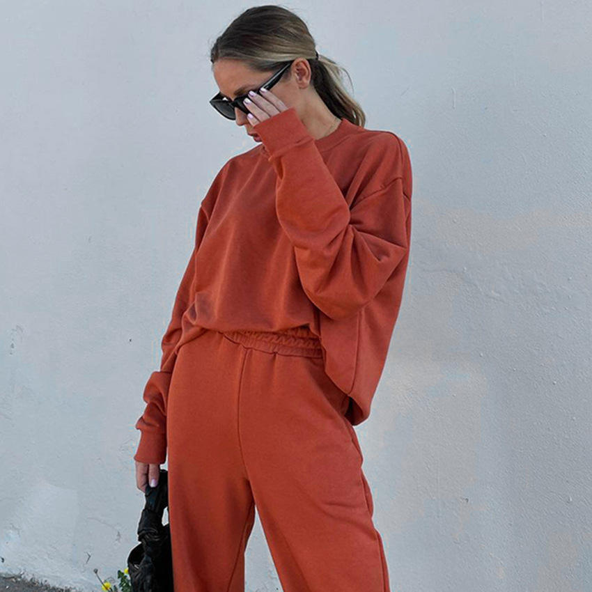 2023 invierno europeo americano mujer 2 piezas cremallera bordado Sudadera con capucha manga larga sudadera Color sólido pantalones casuales chándal