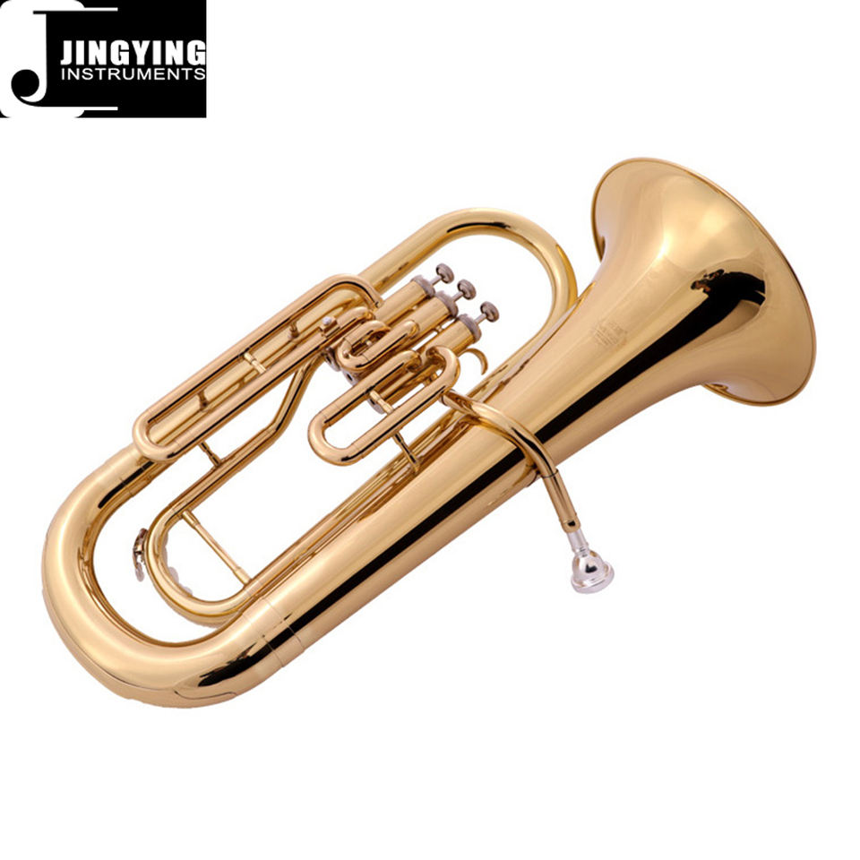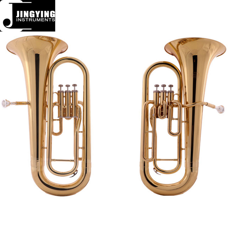 2023 Jingying Music Brass Instrumentos de viento, cuerpo de latón laca dorada Válvula de pistón de 3 teclas Modelo de entrada de bombardino