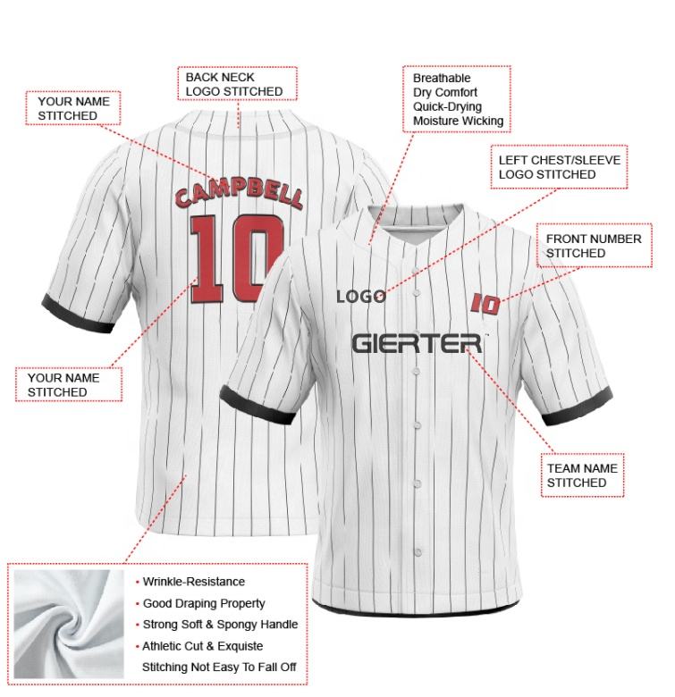 Métodos de impresión:jersey de béisbol personalizado con bordado