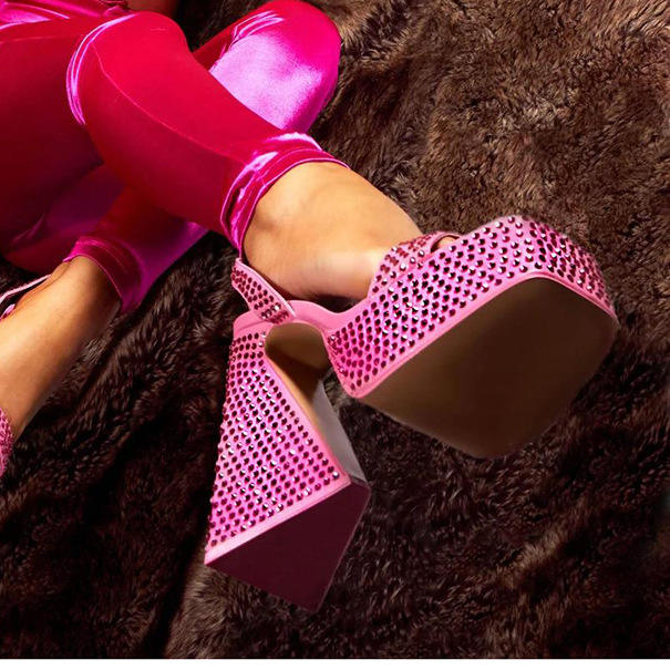 Zapatos de tacón alto con diamantes de imitación para mujer, zapatillas de cuña con plataforma para la playa, 2023