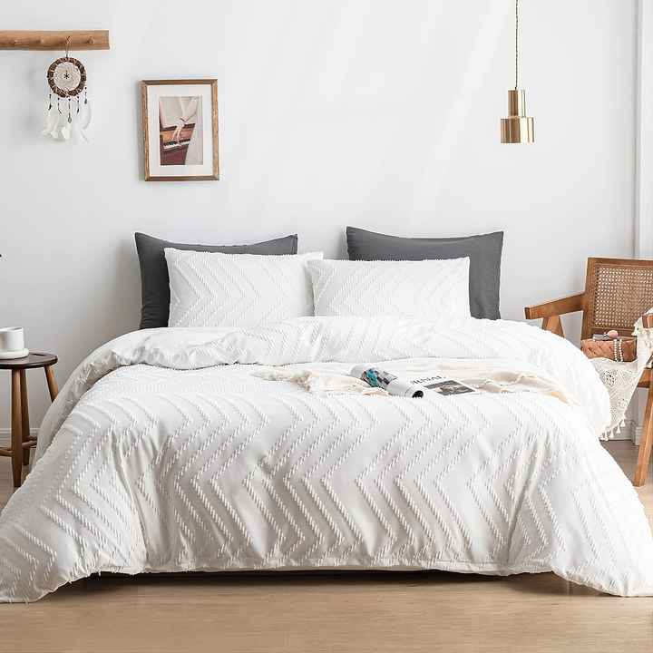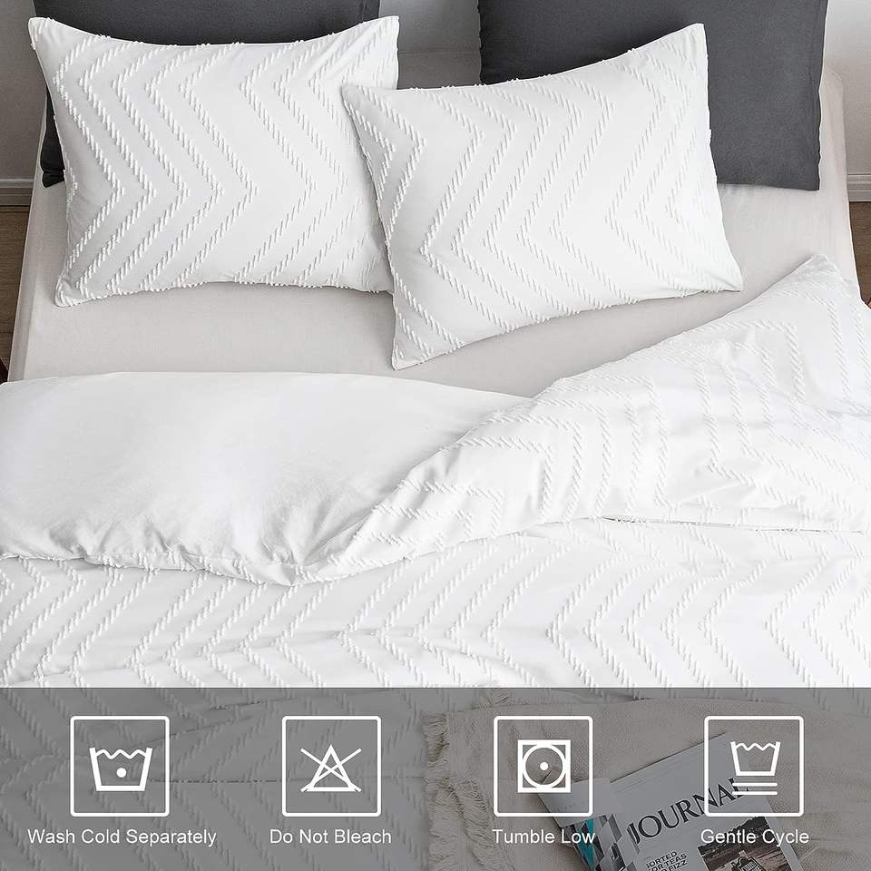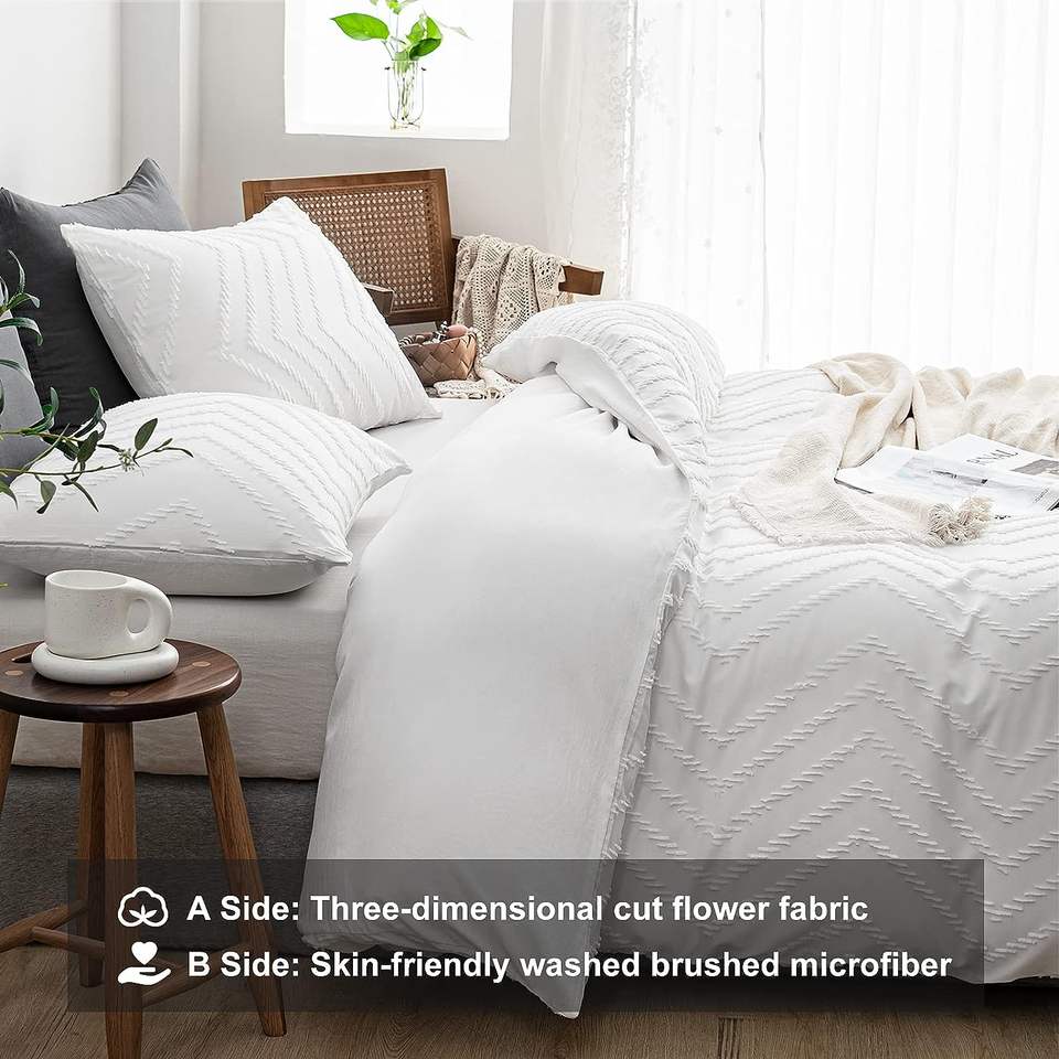 2023 nuevo diseño corte flor estilo ondulado cubierta blanca con fundas de almohada tamaño Queen bordado funda nórdica juego de cama