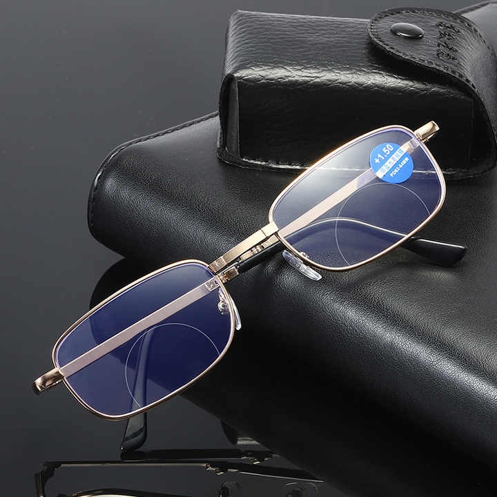 Gafas de Presbicia Plegables Portátiles 2025, con Protección Contra la Luz Azul, Doble Propósito, para Hombre y Mujer, Montura Metálica