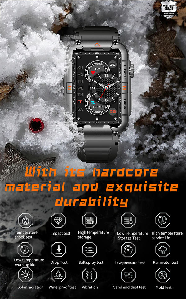 Reloj Inteligente Resistente para Exteriores 2023, Unisex, Resistente al Agua, Especial, Rectangular, Delgado, Conectado, OLED, Gel de Sílice, Alarma de Sueño