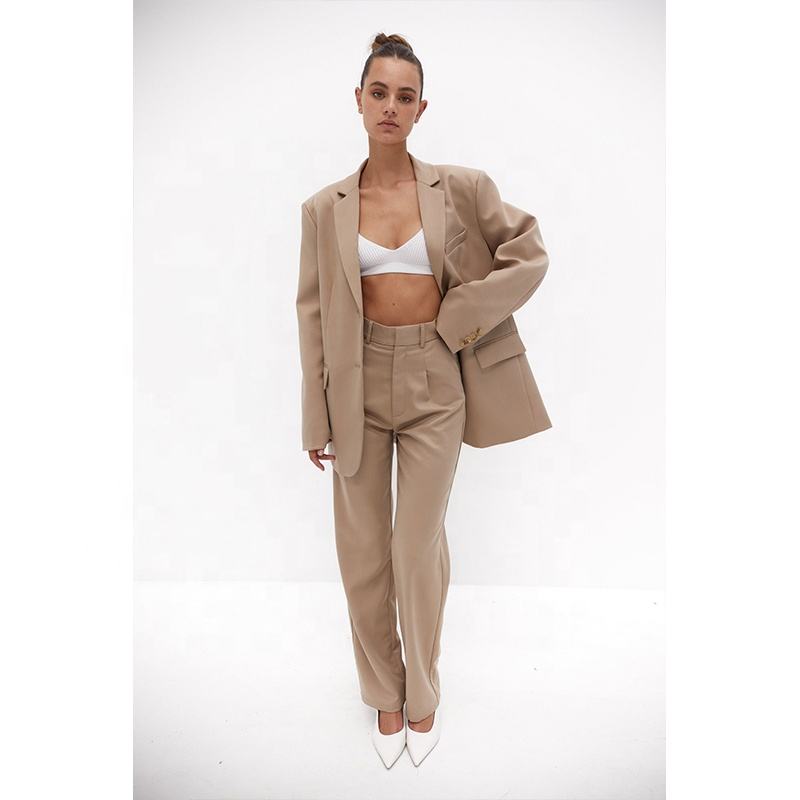 Detalles del embalaje:1piece one poly bag, approx. 40-50pieces per box. Carton box size 60X40X40CM(or it can be customized)2023 new style 2 Piece Outfits for Women Long Sleeve Solid Button Up Blazer and pants oversized blazer Suit Sets