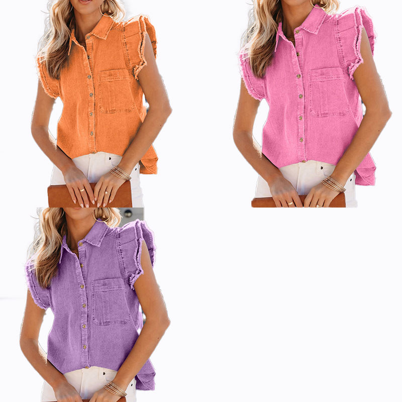 2023 nuevo estilo de longitud media Ragged Hole Denim Coat mujer otoño manga larga Casual Polo Top