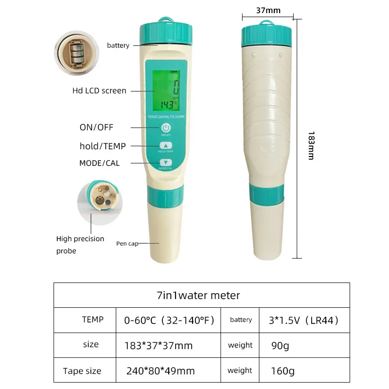 Nombre del producto:Medidor de Análisis de Calidad del Agua 7 en 1