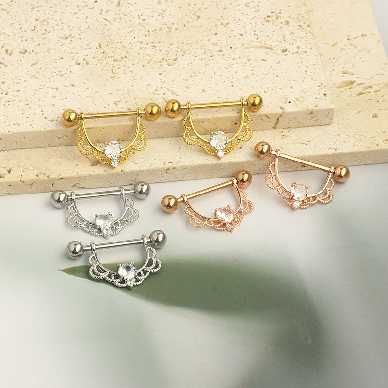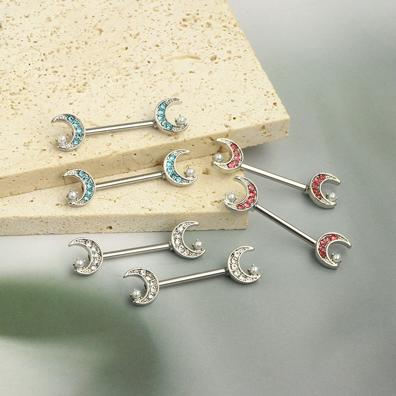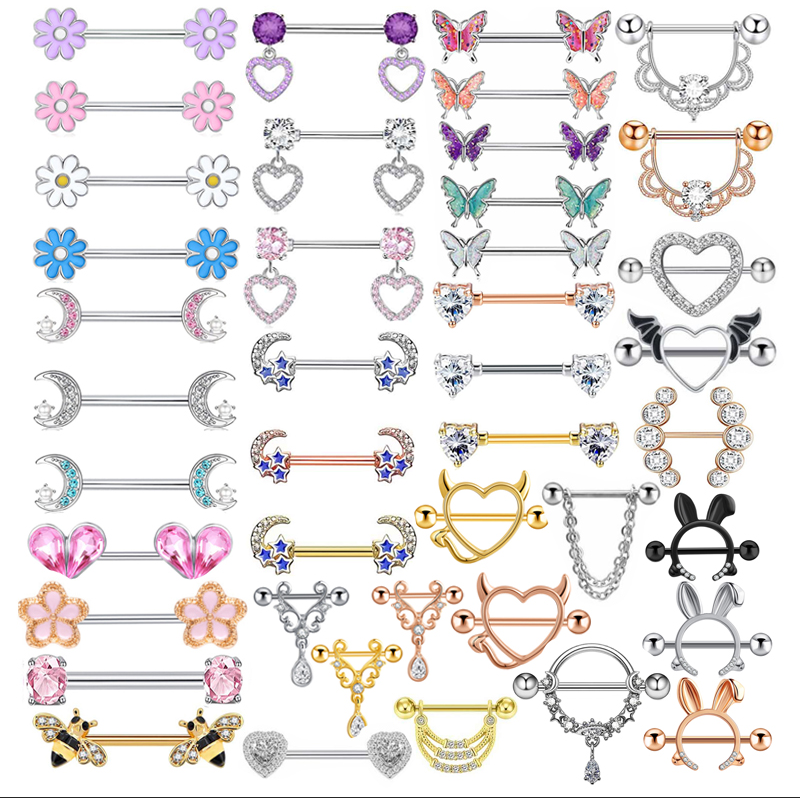 Anillas para pezón 2023 en acero inoxidable: diseño corazón, copo de nieve, barra recta, barbell, cristal CZ, luna; piercing corporal para mujer