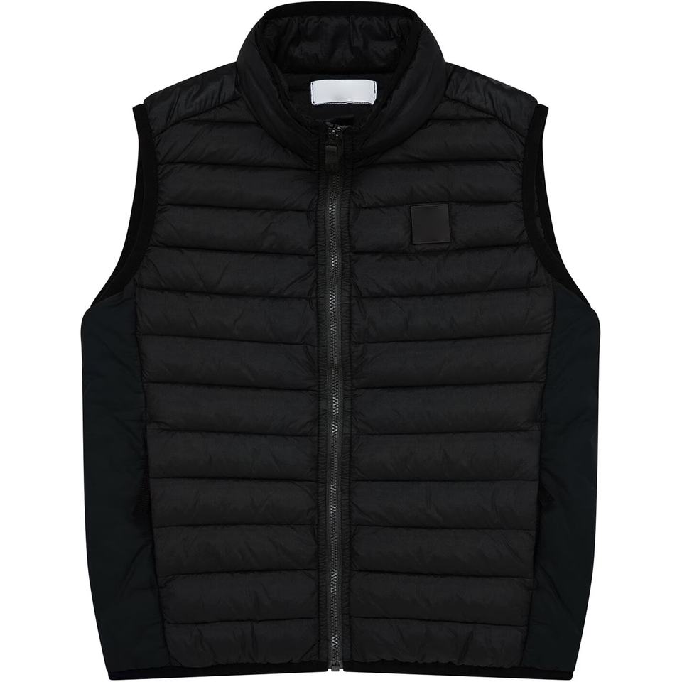 2023 Popular azul marino Patchwork hombres Puffer Gilet chaqueta de lana de peso ligero bordado 3D cálido invierno deporte al aire libre chaleco poliéster