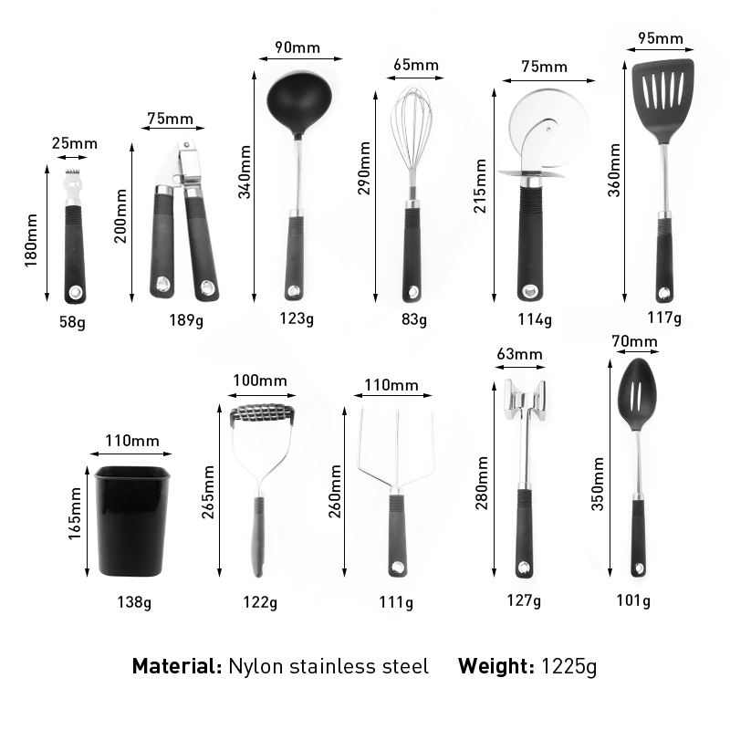 Juego de Utensilios de Cocina Modernos de Silicona y Acero Inoxidable UNIVERSEA 2023 de 11 Piezas - Color y Logotipo Personalizables, Portátil y Sostenible