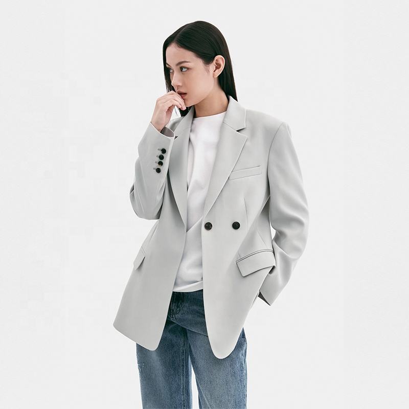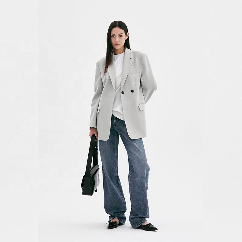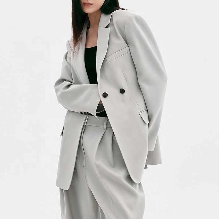 1 pieza una bolsa de polietileno, aprox. 40-50 unidades por caja. Caja de cartón de Tamaño 60x40x40cm (o se puede personalizar) 2023 conjunto de traje de chaqueta de primavera conjunto de chaquetas de mujer conjunto de chaqueta de doble botonadura Tops de tubo y pantalones de cintura alta conjunto Formal de oficina