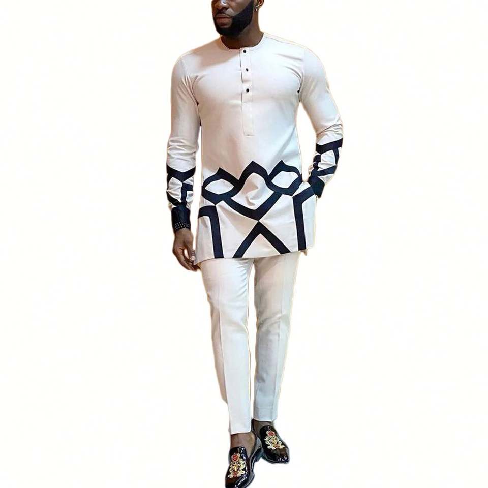 Conjunto minimalista de primavera 2023 para hombre con camisas y pantalones estampados a cuadros, traje Dashiki de dos piezas de algodón, ropa africana para hombre