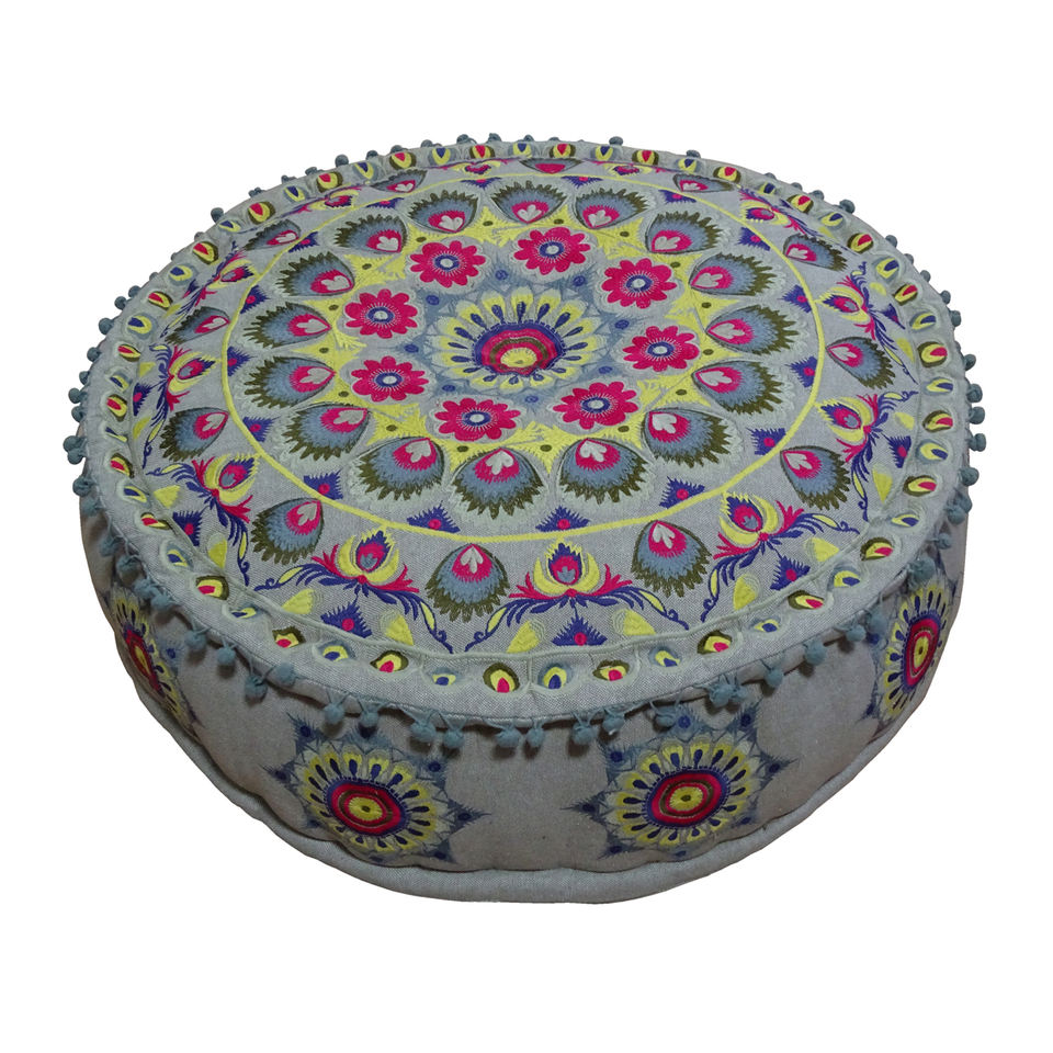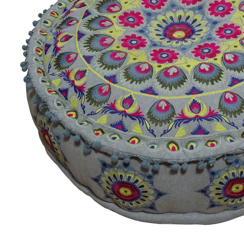 Nuevo Diseño en Tendencia, Cojín Puff de Tela Bordada India, Otomana de Lujo, Reposapiés Decorativo, Redondo, Hecho a Mano