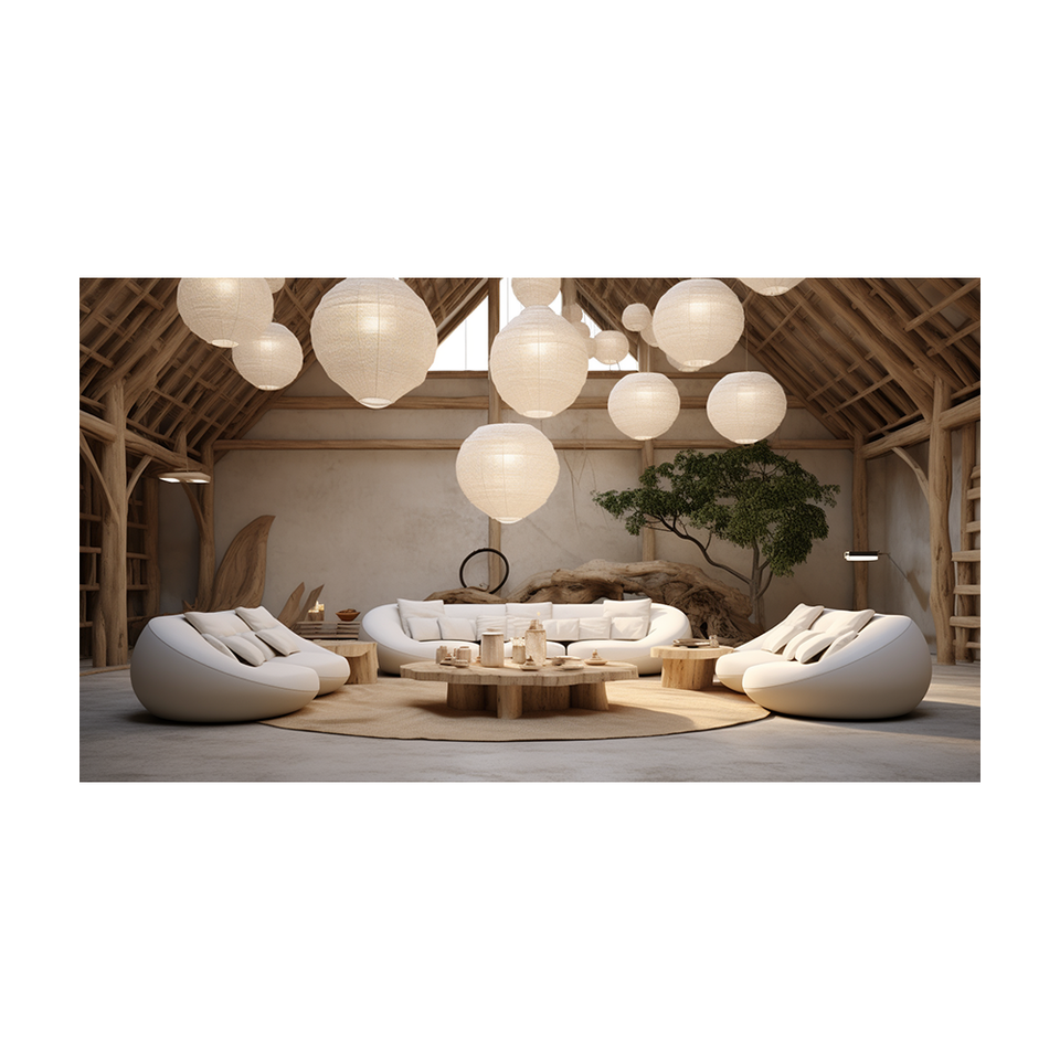 2024 AI 3D Servicios de diseño de interiores para un cómodo estilo Wabi-Sabi Sala de estar Concepto creativo Muebles para el hogar