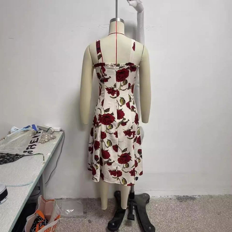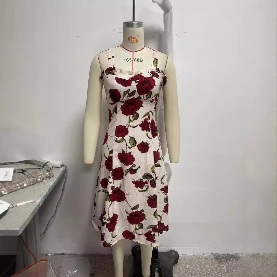 2024 Otoño Invierno ropa de exportación transfronteriza para europeo americano nuevo estampado de rosas Delgado Casual Sexy Floral frontal