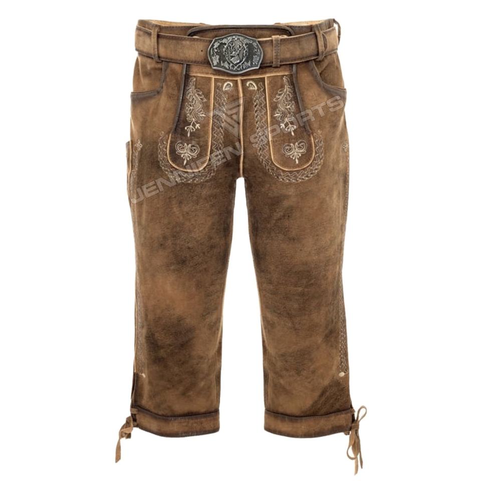 2024 hombres bávaros de gamuza de cabra genuina bordado largo Lederhosen Vintage botón frontal cierre invierno bolsillos laterales cinturón