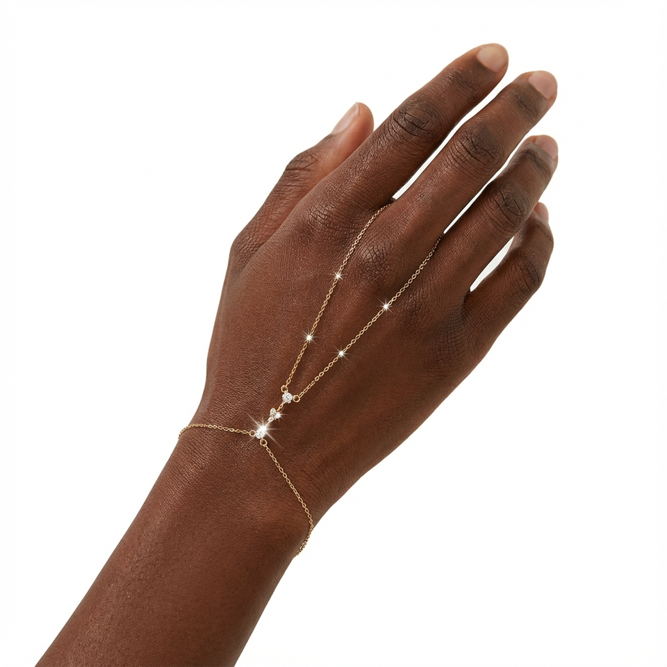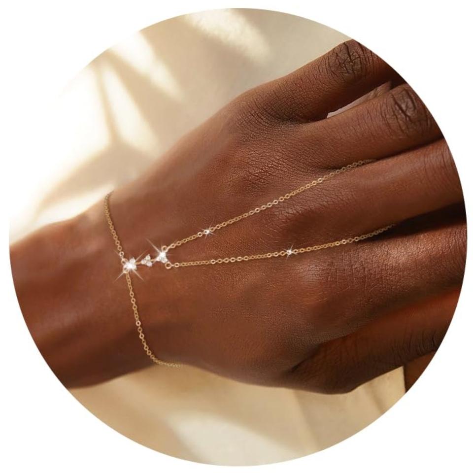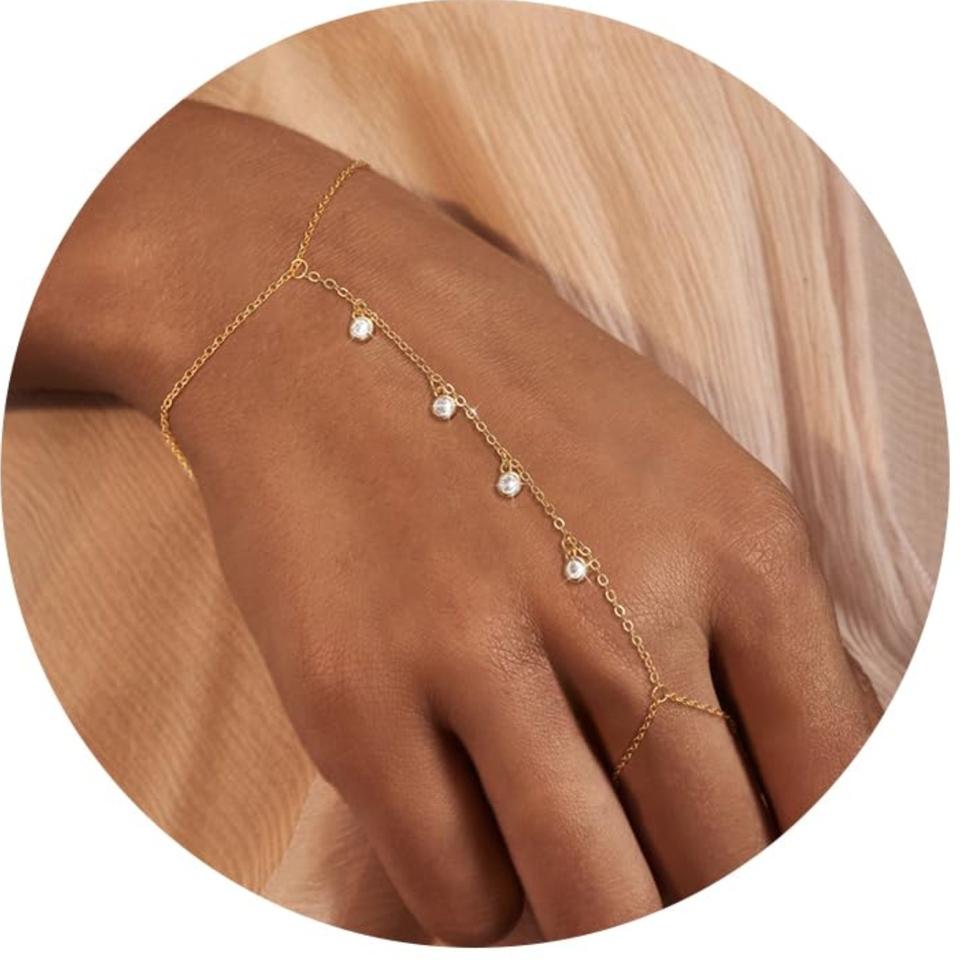 Pulsera 2025 con Cristales Cuadrados de Circonio Incrustados, Bolas Doradas, Cadena de Dedo, Anillo, Cadena de Mano, No se Deslustra