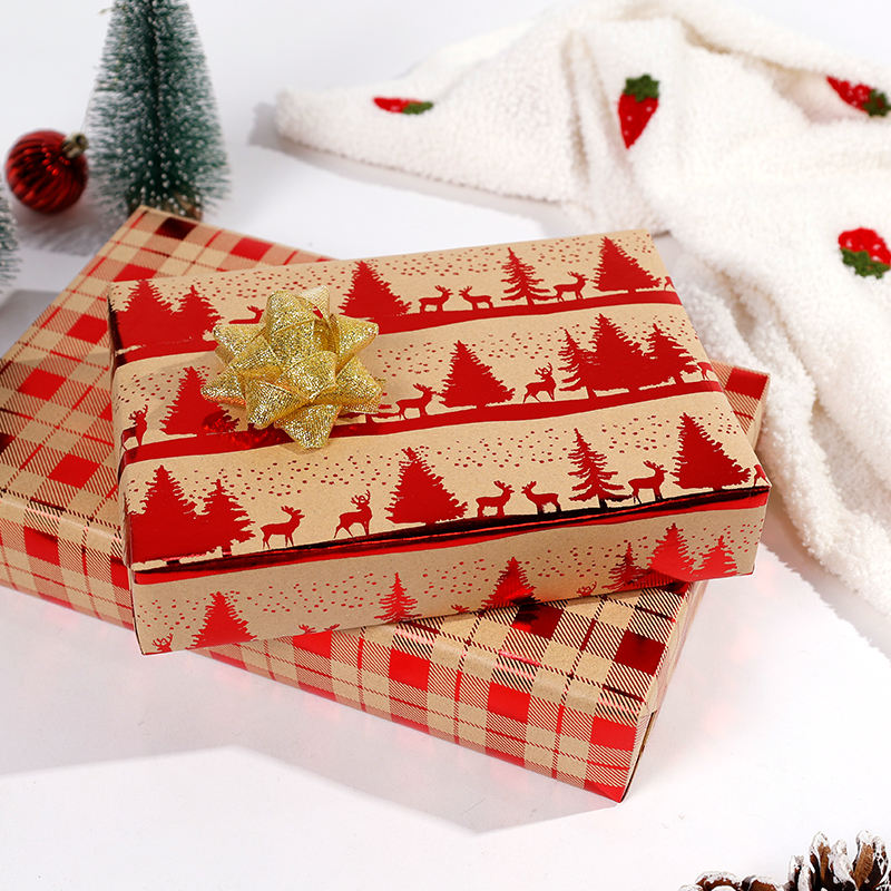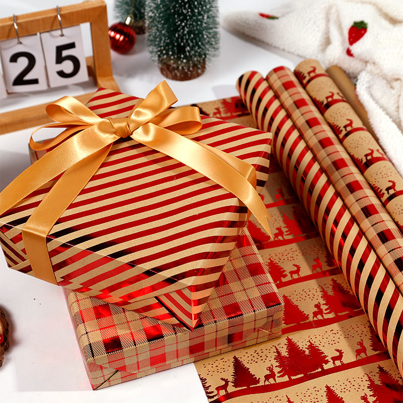Papel de regalo rojo de Navidad 2024 con estampado en caliente 43*300 cm papel de regalo Kraft