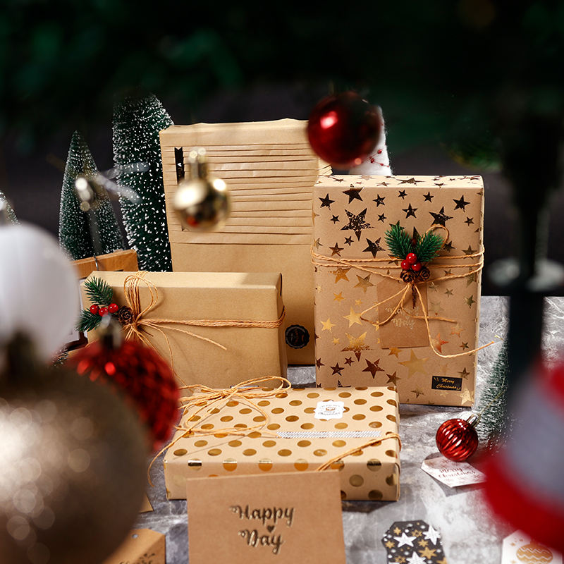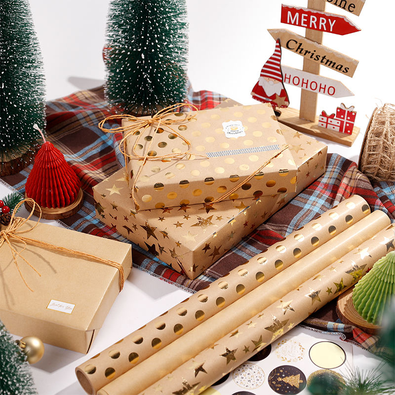 Papel de regalo de Navidad 2024 con estampado en caliente 43*300 cm papel de regalo de punto papel Kraft