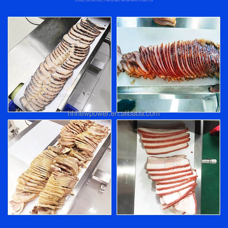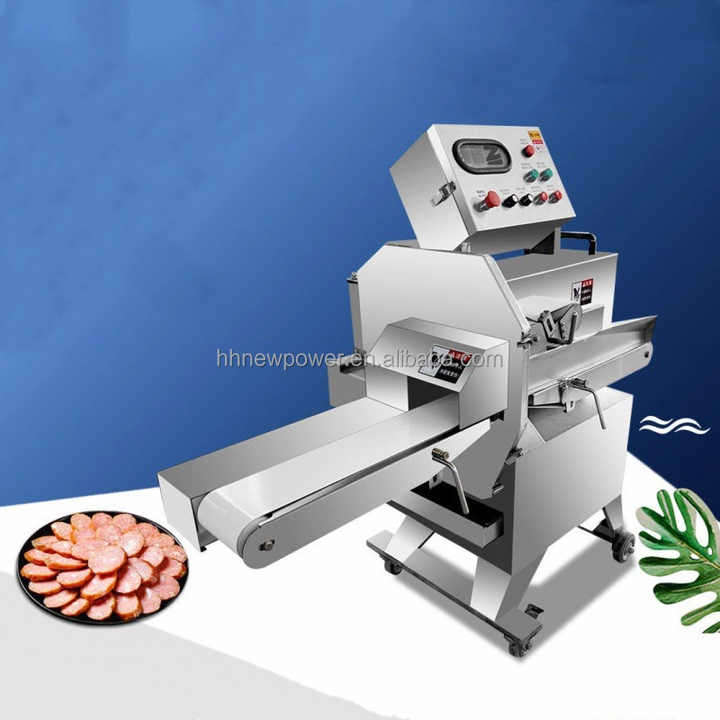 Rebanadora de salchichas de salami de carne cocida de frecuencia Variable automática comercial 2024 con cinta transportadora