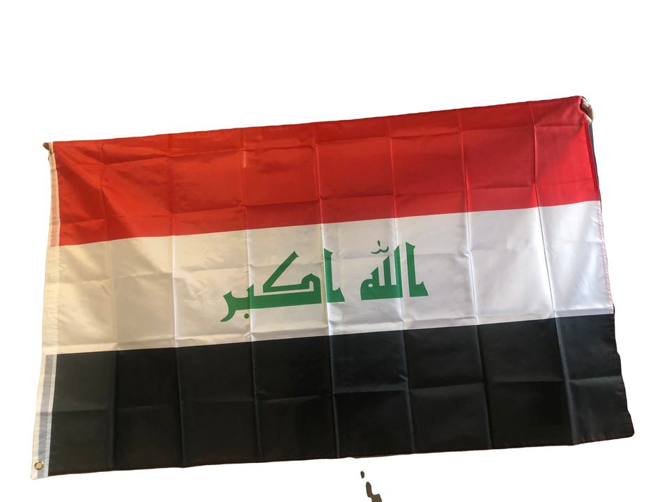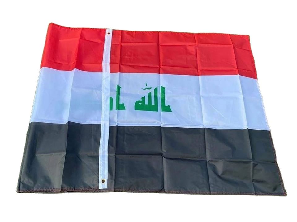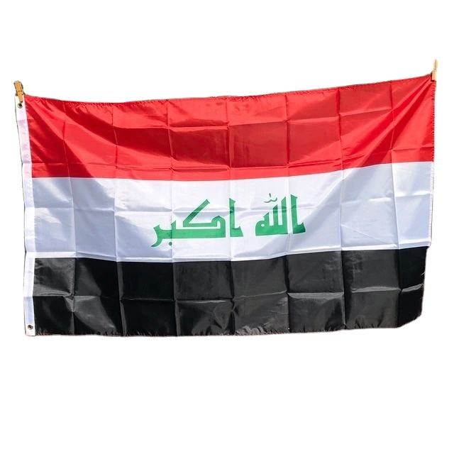 Bandera Nacional de Irak Personalizada 2024, 3x5 pies, Poliéster 100D, Negra, Blanca y Roja, con Ojales y Diseño de Logotipo