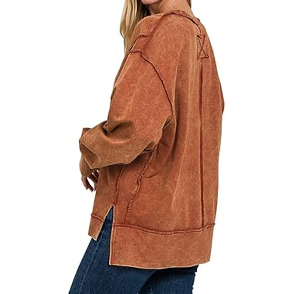 2024 personalizado lavado con ácido de gran tamaño pulóver cuello redondo sudadera para mujer con capucha XS invierno nuevo estilo Vintage estampado Puff sólido
