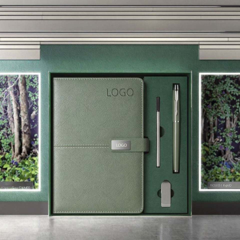 Agenda/Diario A5 2024 con Logotipo Personalizado, Set de Regalo Promocional con Bolígrafo, Cuero PU, Impresión Serigráfica
