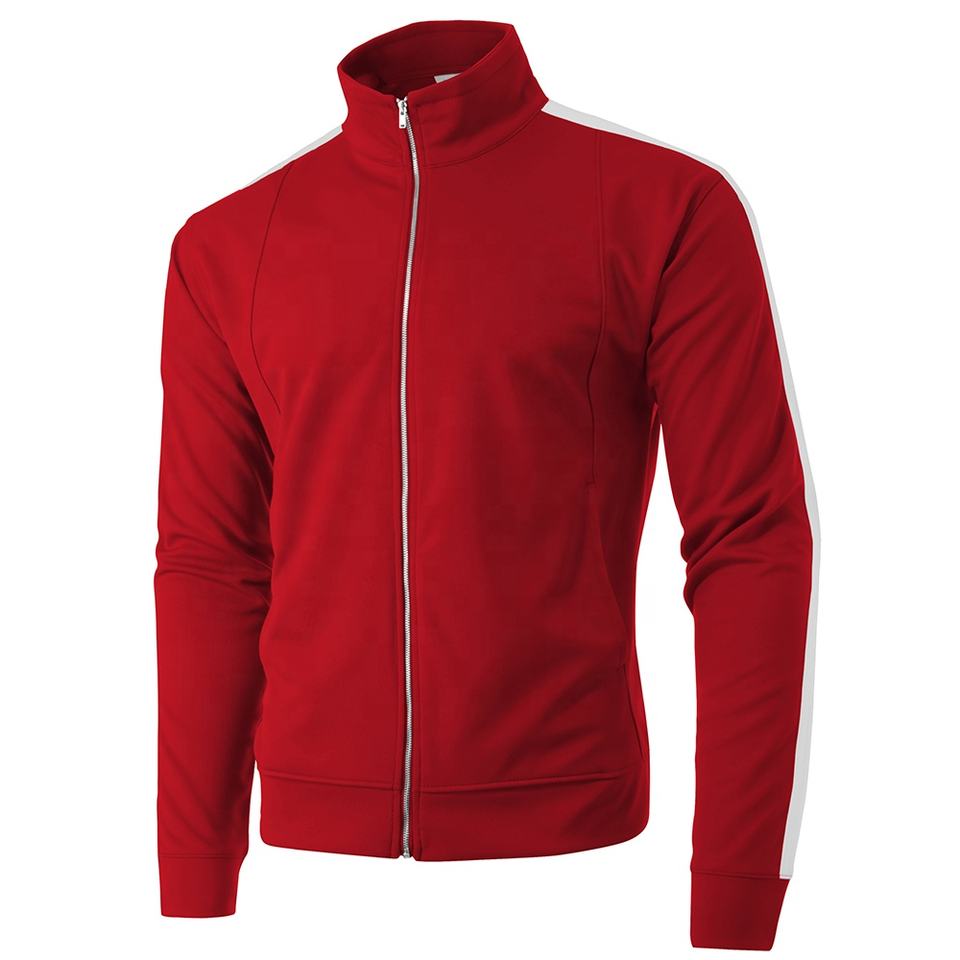 Chaqueta de chándal para hombre con logotipo personalizado 2024 100% poliéster entrenamiento ligero transpirable con panel de contraste camisetas activas