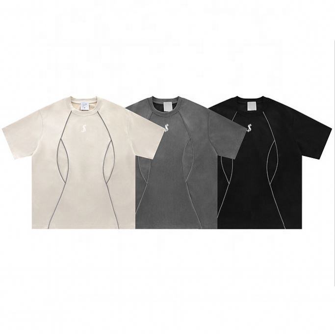 2024 Camisetas de lavado vintage con tinte de ropa personalizada sin aduanas Camiseta de rayas de calle