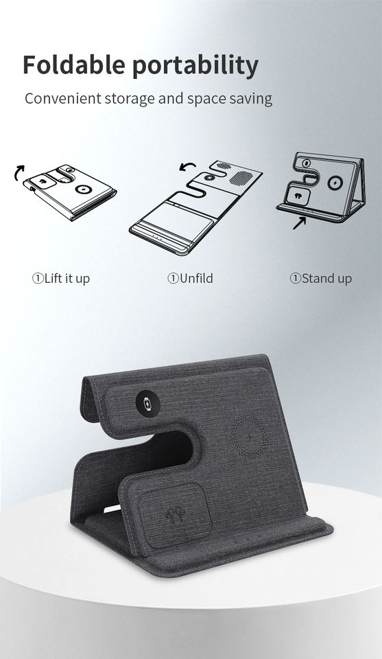 Soporte plegable para reloj inteligente 2024, cargador inalámbrico, potencia de salida de 10W, nuevo producto multifuncional, cuero PU completo para Airpods