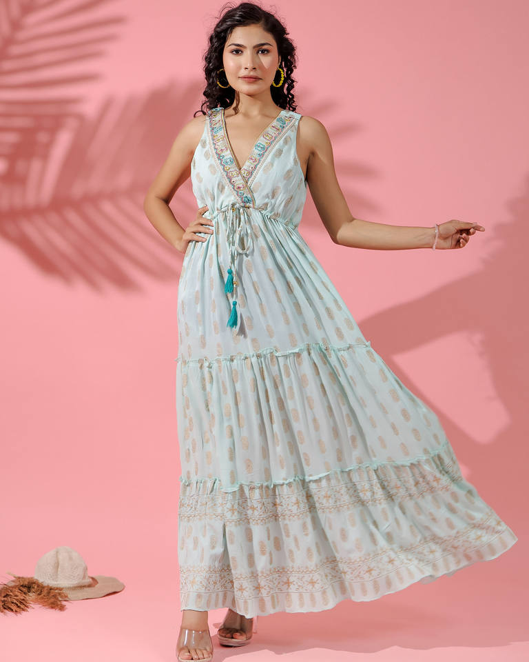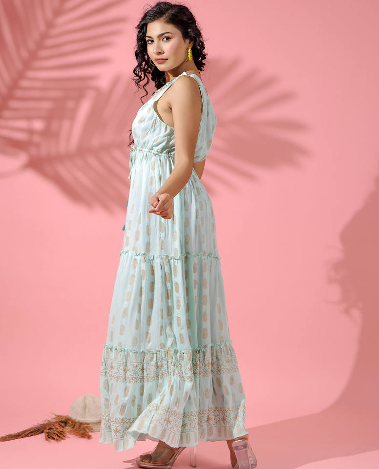 2024 Girls Luxury Lurex Collection para mujeres High Wasted Long Sleeveless Spaghetti Maxi Frilled Dress