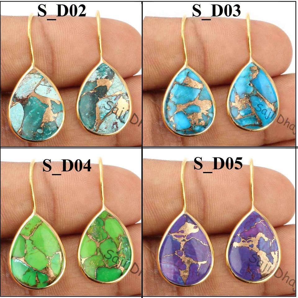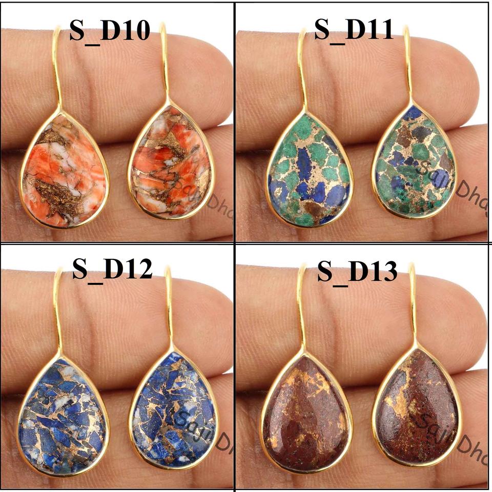 Nombre del producto:Pendientes de Piedras Preciosas Naturales con Baño de Plata y Oro