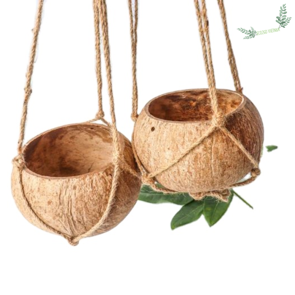 2025 maceta y maceta de cáscara de coco reutilizable hecha a mano para colgar plantas directamente de Vietnam