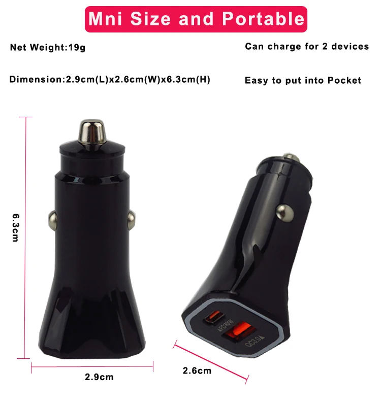 2024 Venta caliente de alta calidad Mini QC3.0 + PD18W cargador de teléfono móvil cargador de coche USB barato para Iphone para Samsung Galaxy