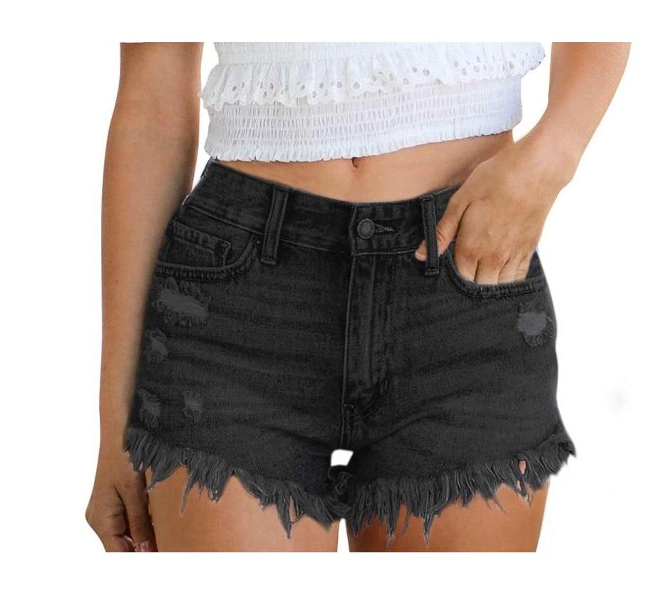 2024 hasta la rodilla verano sólido recto bolsillo señoras Jean pantalones cortos algodón caliente pantalón corto Jeans lavado pantalones cortos de mezclilla para mujeres