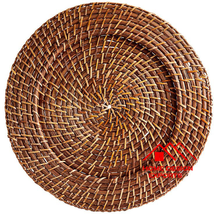 Placa de cargador de ratán para mesa de comedor 2025 último diseño personalizado hecho a mano diseño dual