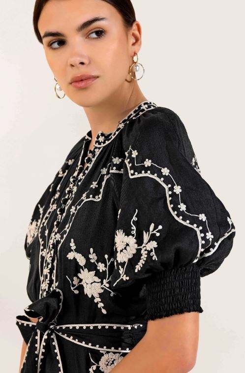 2024 último vestido Floral de manga corta para mujer, vestido largo moldeador de cintura de algodón, dividido en el muslo, lavable, antiestático, servicio OEM