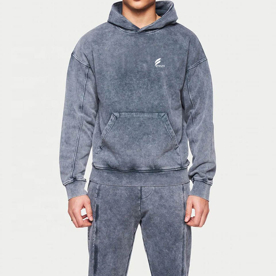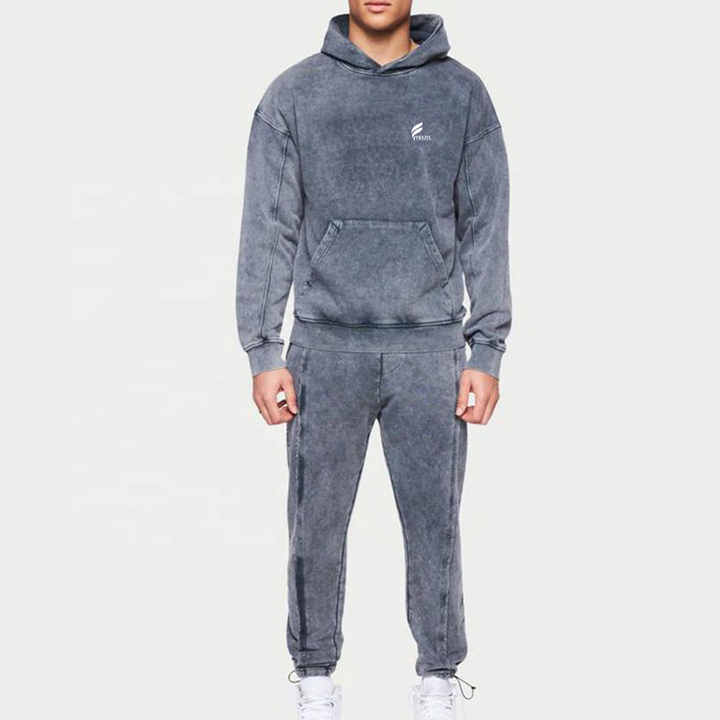 Trajes de chándal Premium Acid Wash para hombre 2024 Logo personalizado Conjuntos de Jogger de algodón transpirable y etiqueta privada a la venta para invierno 100%