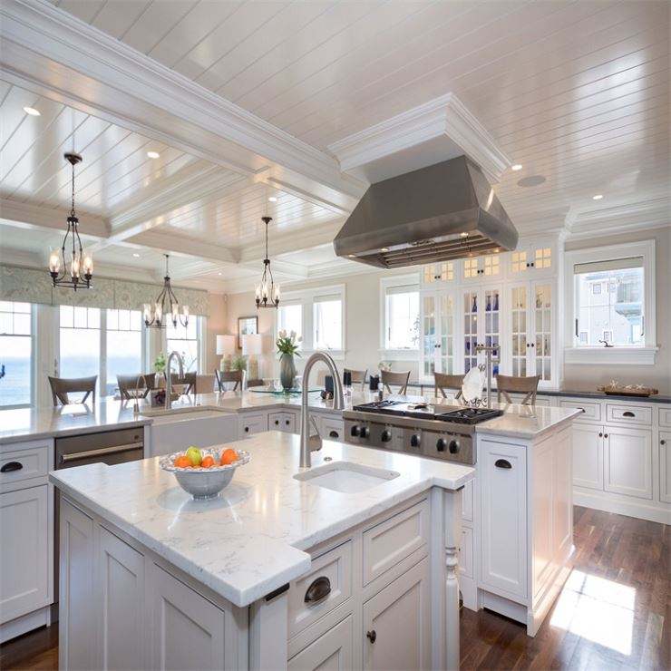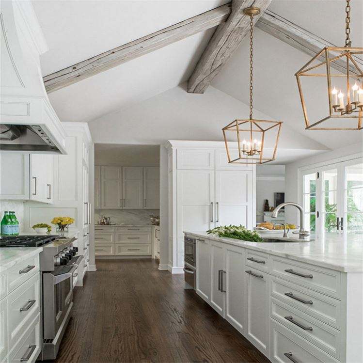 Gabinetes de Cocina RTA Modernos Blancos Profesionales 2024 con Isla, Conjunto de Muebles de Cocina Profesionales para Proyecto de Villa, Hechos de Madera