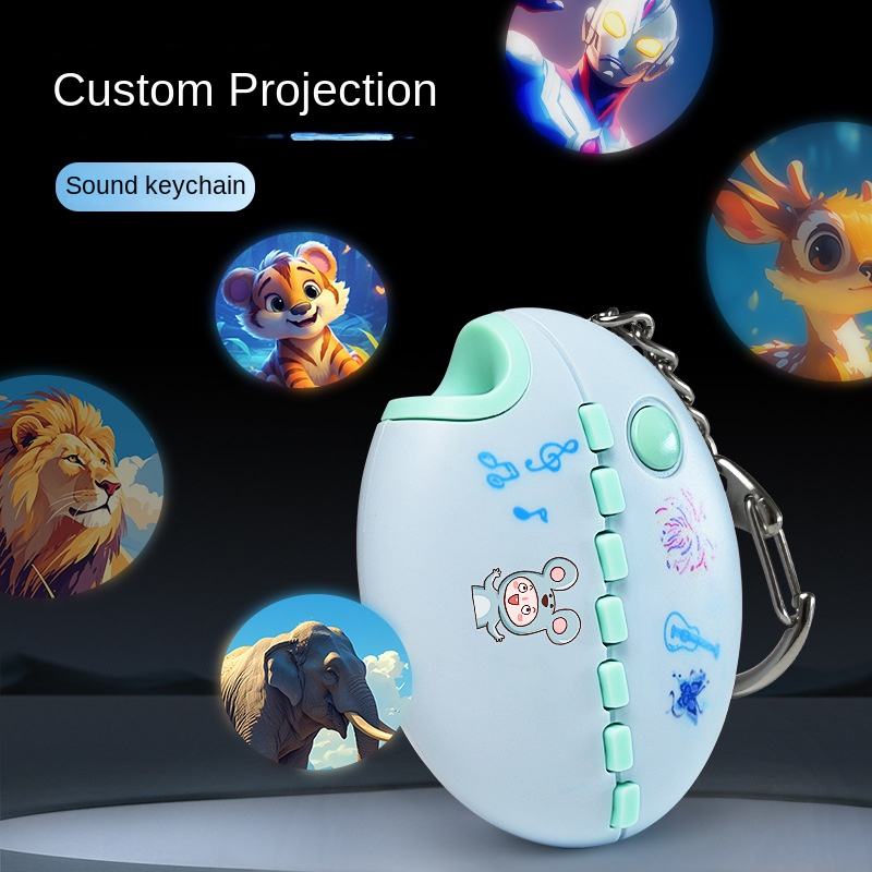 2024 recién llegado forma de pez programable pregrabable 7 Botón de sonido llavero proyector hablando llaveros altavoces producto
