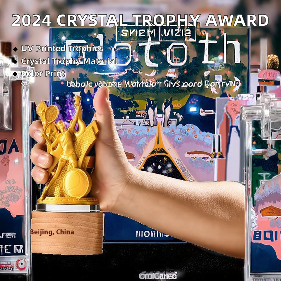 2024 nuevo trofeo de cristal colorido excelente premio al empleado en la serie pentagrama plumas de resina caballo dragón para la industria de seguros